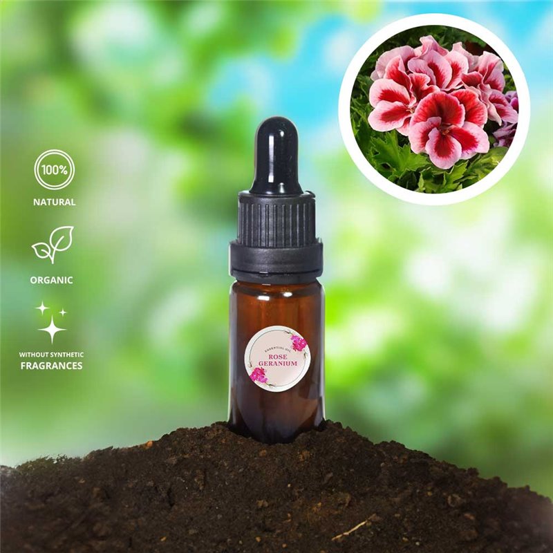 Geranien Rose 23337 Ätherisches Öl wird durch Wasserdampfdestillation aus Blättern und Blüten von Pelargonium graveolens var. roseum gewonnen, mit intensivem Rosenduft – perfekt für Haut und Textilien.
