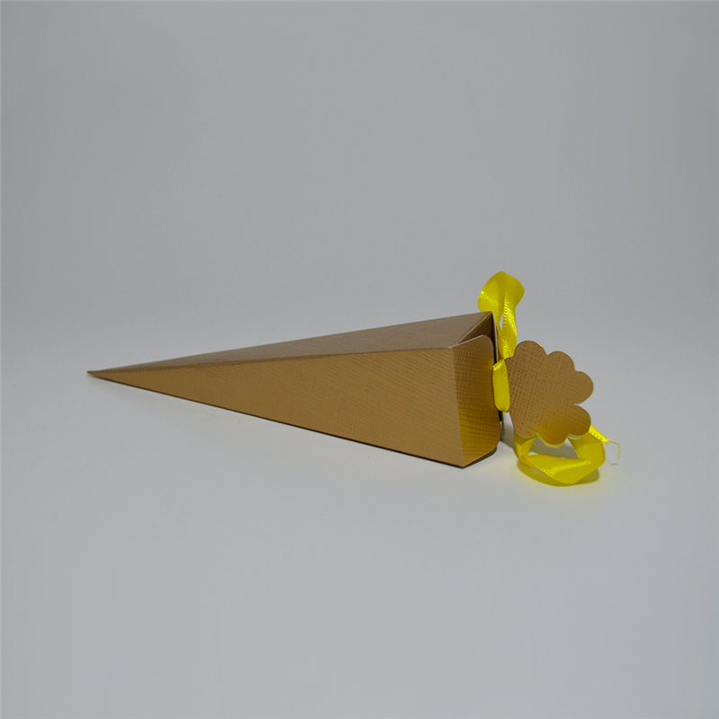 Geschenkbox - Kegel Quadrat 155 SETA ORO kombiniert ein originelles Design mit praktischer Eleganz. Der obere Teil wird mit einem Band geschlossen (nicht enthalten), perfekt für Süßwaren, Schmuckstücke oder stilvolle Giveaways. Ideal für Events und Geschenkverpackungen.