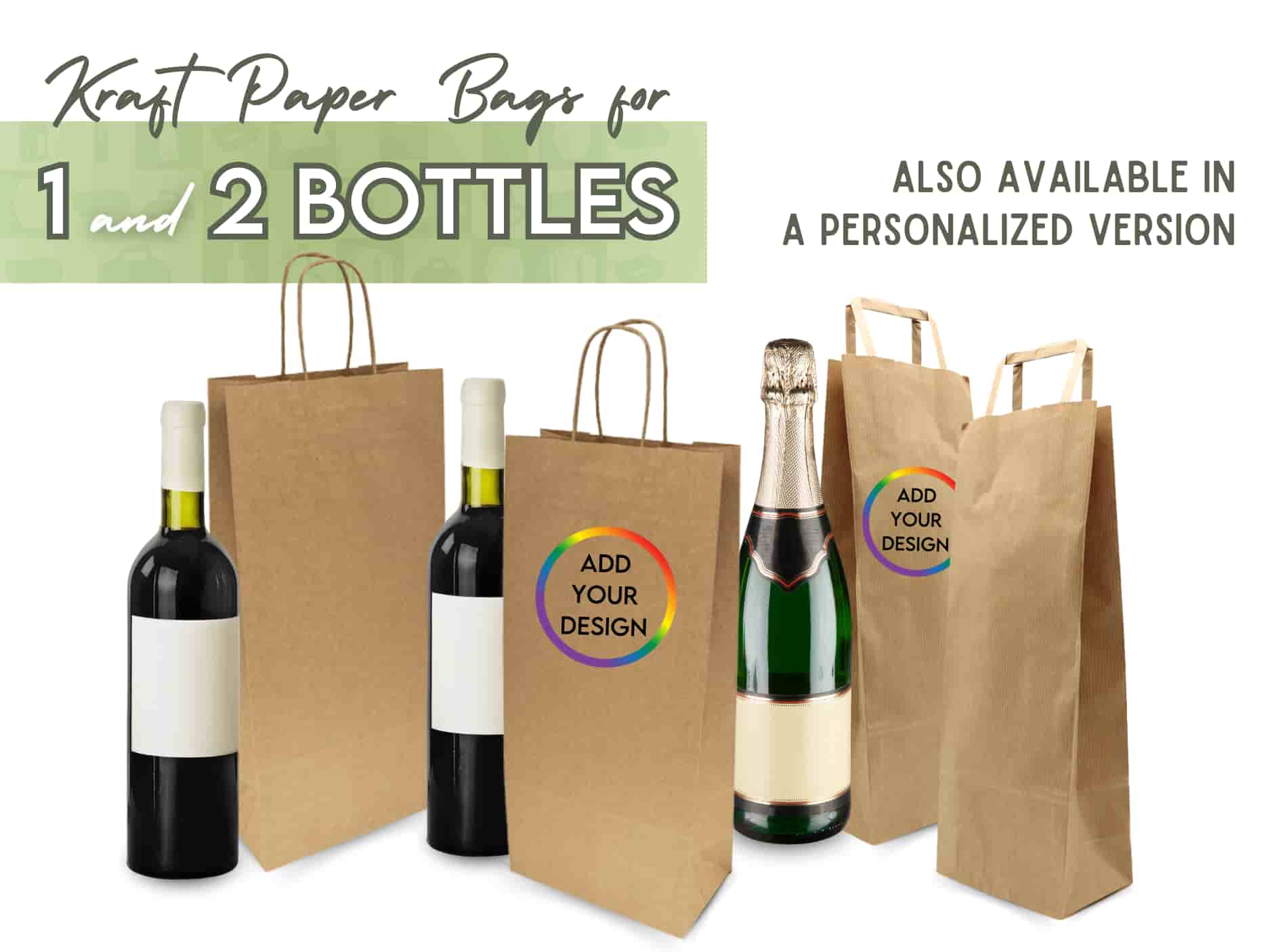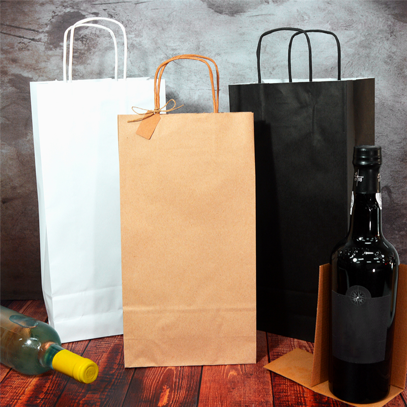 Kraft paper bags with twisted paper handle for 2 bottles quite resistant available in two colors - white and black in 250 boxes