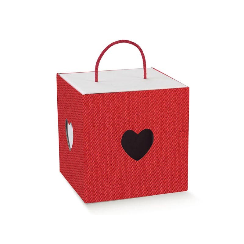 Premium gift box in micro-corrugated cardboard with cord, model Lino Rosso 210x210x210mm. Square and sturdy format, perfect for packaging delicate items or creating stylish holiday gift baskets. The cotton cord ensures practical carrying and adds charm.