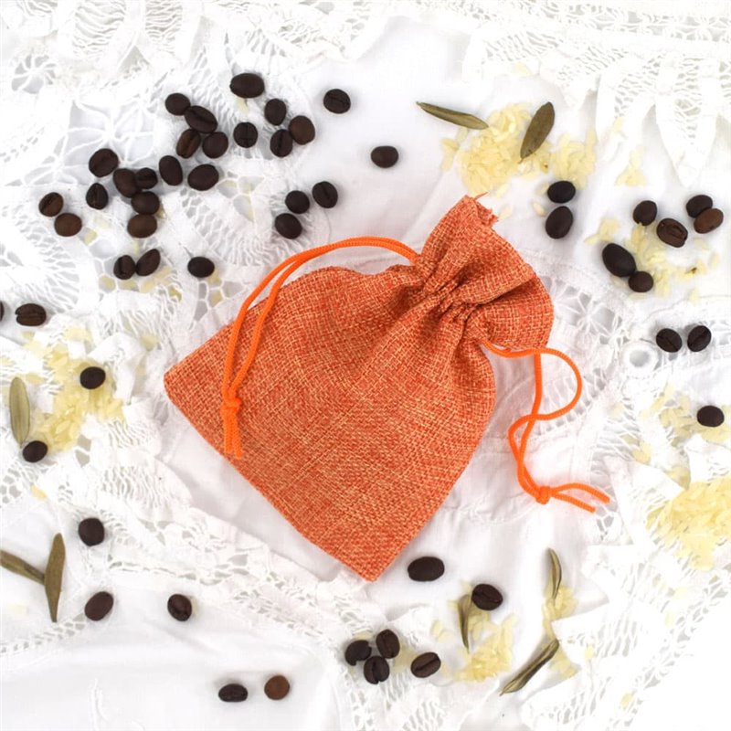 The 10x14cm Pumpkin Orange jute bag is made of strong fibers known for their durability and moisture resistance. Ideal for storing and transporting agricultural products, it is also excellent for gifts and special favors.