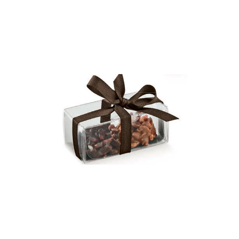 Scatola in acetato trasparente con design tubo automontante. Ideale per cioccolatini e pasticceria.